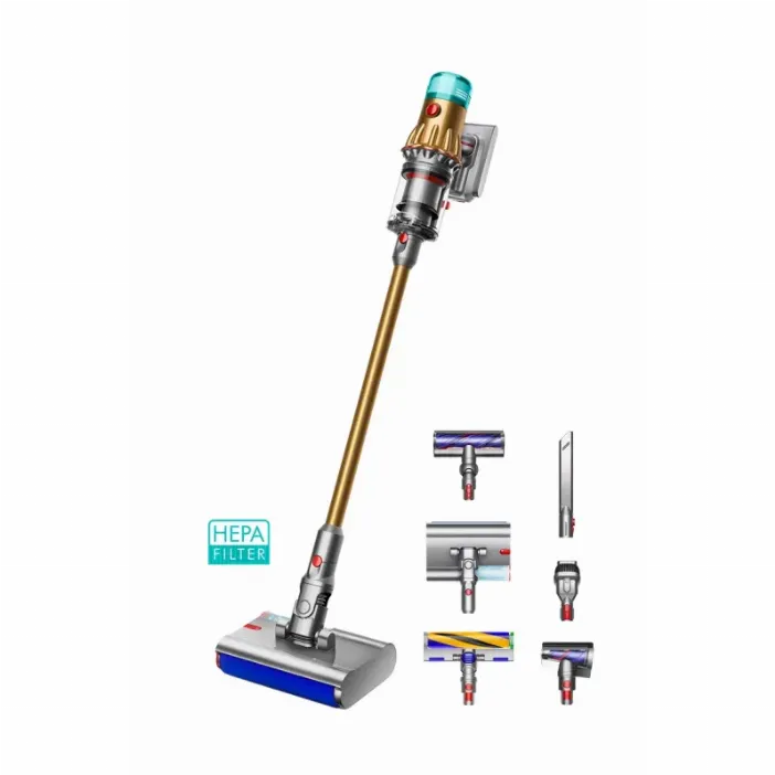 - Комплектация вложенности: Беспроводной пылесос, основная насадка со встроенным лазером, насадка для влажной уборки Dyson Submarine, насадка для волос и шерсти, щелевая насадка, комбинированная щётка, настенный держатель, зарядное устройство